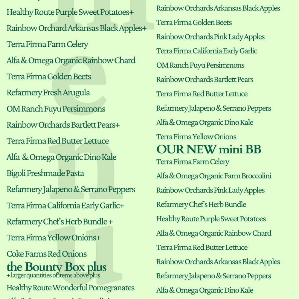 New recipes posted every week inspired by the ingredients from our Bounty Box. Check out our food blog and let your taste buds go nuts!