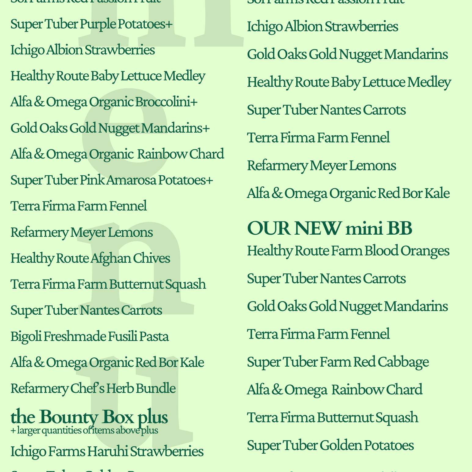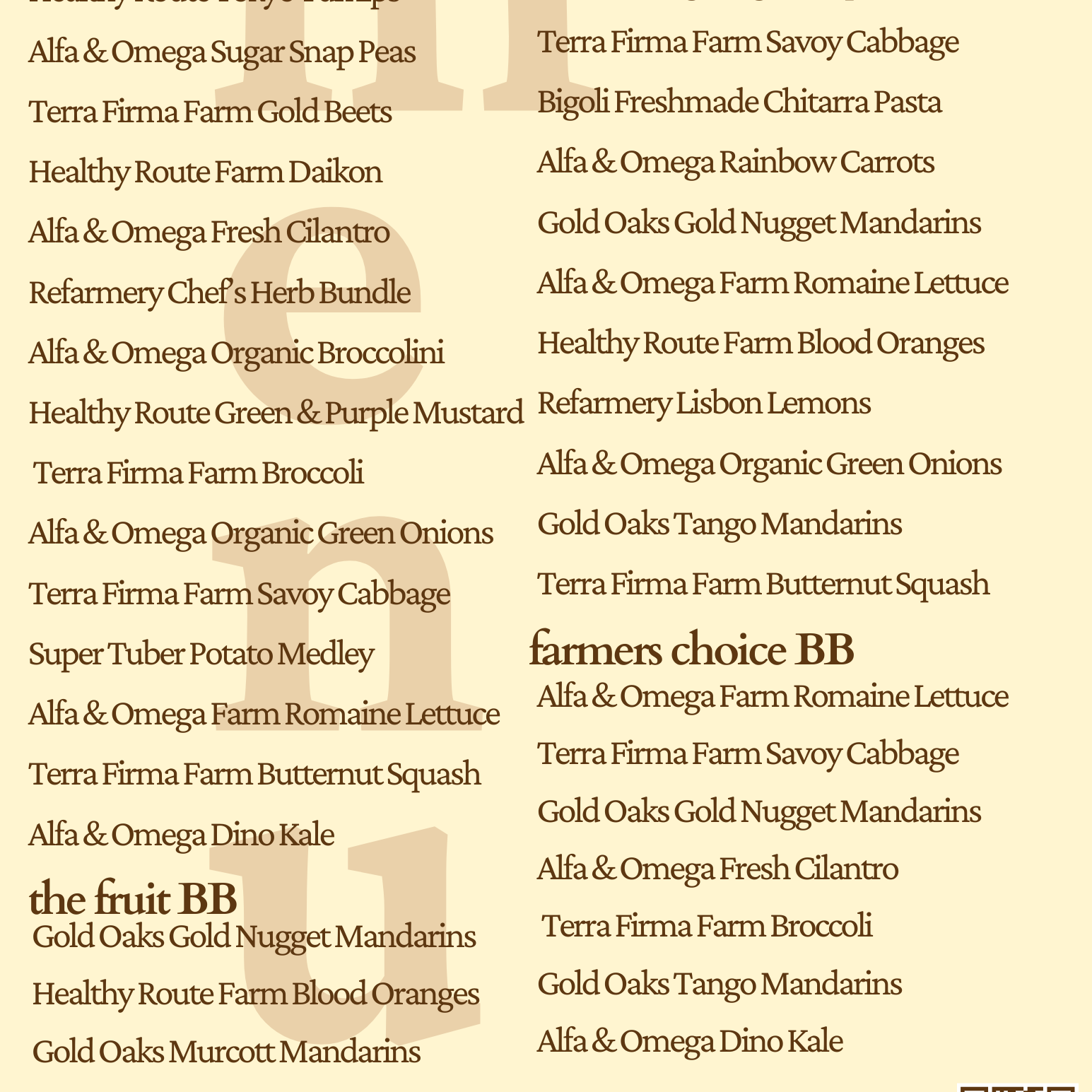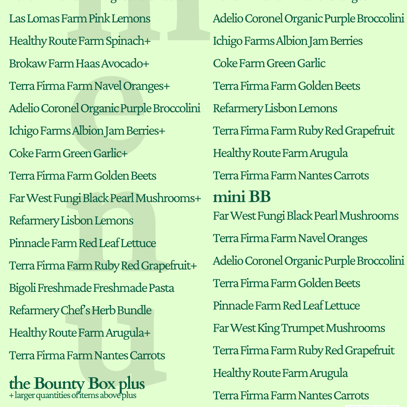 New recipes posted every week inspired by the ingredients from our Bounty Box. Check out our food blog and let your taste buds go nuts!