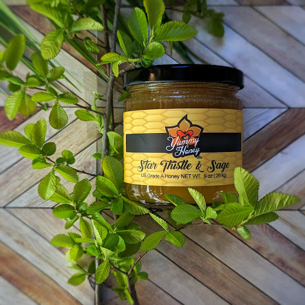 Star Thistle & Sage | A wonderful digestive aid with a notable quantity of silymarin, a natural compound made of flavonoids and polyphenolic compounds which prevents liver damage. The antioxidants found in Star Thistle & Sage honey have been found to prevent the oxidation of lipids that often restrict blood flow.