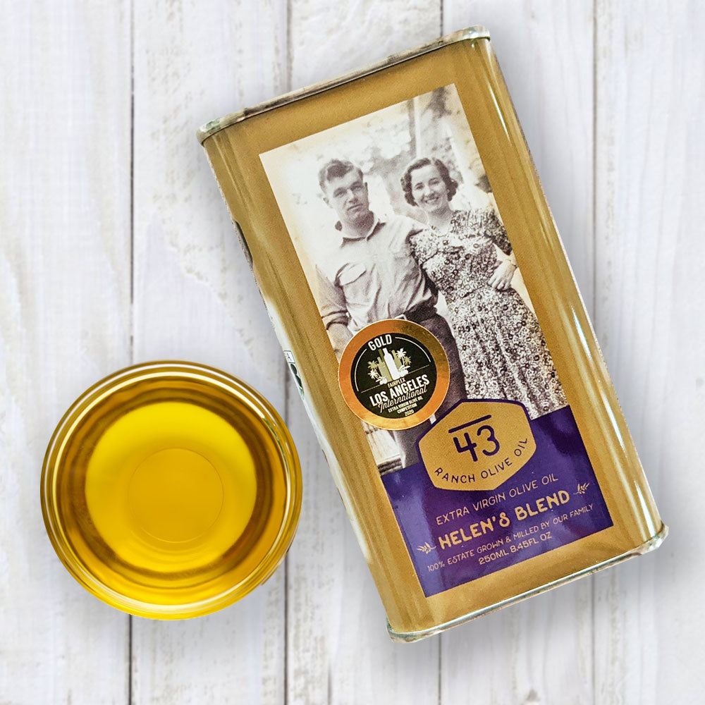 A unique California blend of Italian and Spanish varietals. Our most versatile oil. Great for both hot food and delicate salads and vegetables.
