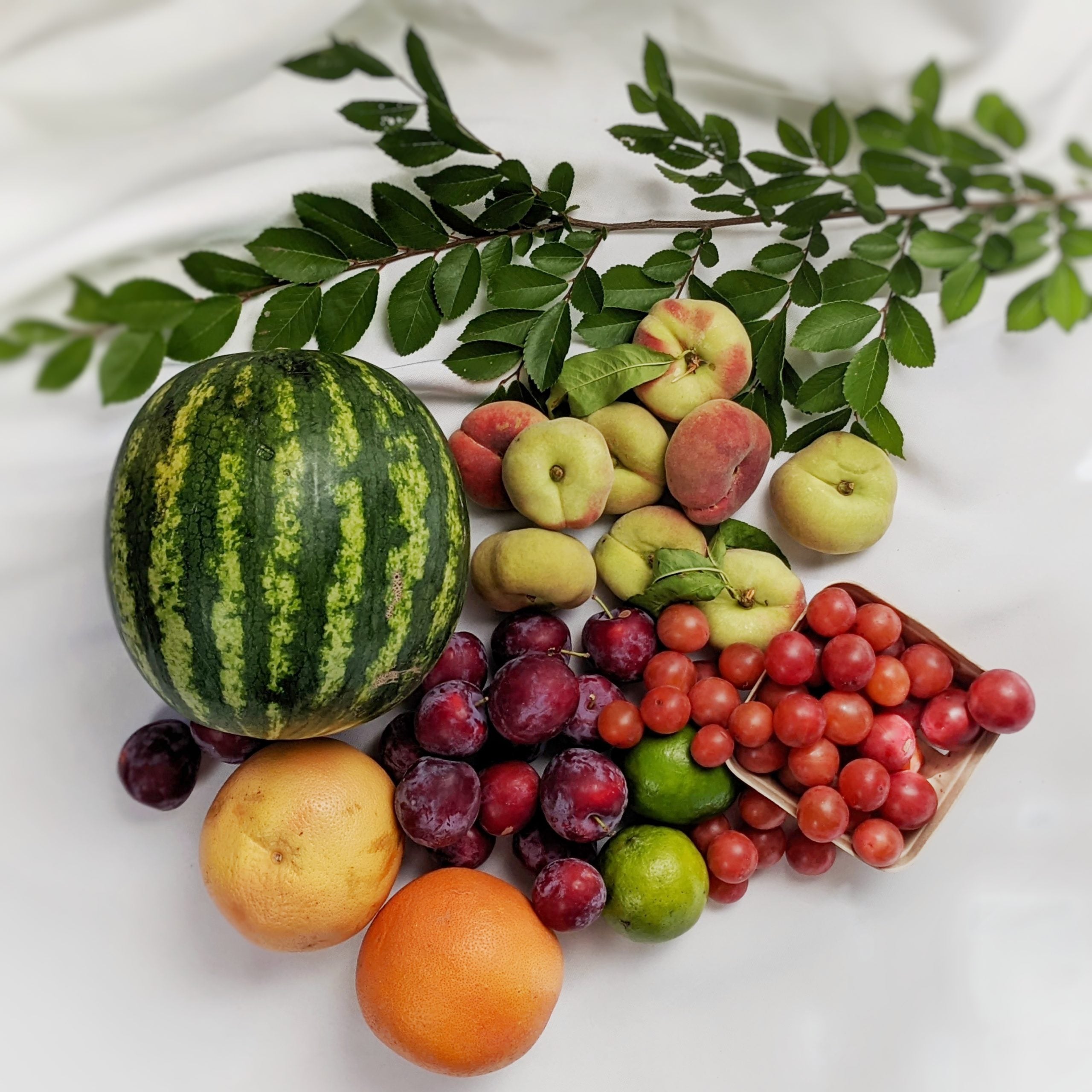 Introducing the Fruit Bounty Box, your passport to peak-season fruits, sourced from small local farms across California’s sun-drenched landscapes. These dedicated growers use sustainable agriculture practices to nurture every lush peach, juicy yellow watermelon & tart, ruby pomegranate with care for the planet. While we prioritize local harvests, we’ll occasionally venture to another California region for a burst of variety - ensuring each box is a vibrant, eco-conscious celebration of the season’s best.